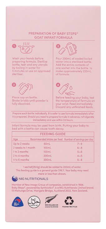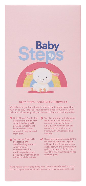 Baby Steps®Goat Infant Formula is a breast milk substitute designed to provide complete and balanced nutritional support. It may be used from birth.